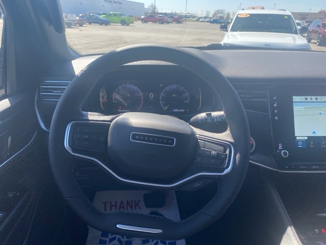 Convenience Group I (2nd Row Manual Window Shades, Active Lane Management System, Adaptive Cruise Control w/Stop & Go, Auto High Beam Headlamp Control, Heated Second Row Seats, P&P Park & Unpark Assist w/Stop System, Rain Sensitive Windshield Wipers, Side Distance Warning, and Surround View Camera System), Quick Order Package 25E, 10 Speakers, 3.55 Rear Axle Ratio, 3rd row seats: bench, 4-Wheel Disc Brakes, ABS brakes, Adjustable pedals, Air Conditioning, Alloy wheels, AM/FM radio: SiriusXM with 360L, Anti-whiplash front head restraints, Apple CarPlay/Android Auto, Audio memory, Auto-dimming door mirrors, Auto-dimming Rear-View mirror, Auto-leveling suspension, Automatic temperature control, Brake assist, Bumpers: body-color, Compass, Delay-off headlights, Driver door bin, Driver vanity mirror, Driver's Seat Mounted Armrest, Dual front impact airbags, Dual front side impact airbags, Electronic Stability Control, Emergency communication system: Wagoneer Connect, Exterior Parking Camera Rear, Four wheel independent suspension, Front anti-roll bar, Front Bucket Seats, Front Center Armrest w/Storage, Front dual zone A/C, Front fog lights, Front reading lights, Fully automatic head Price includes: $1000 Bonus Cash not available with sub vented ra
