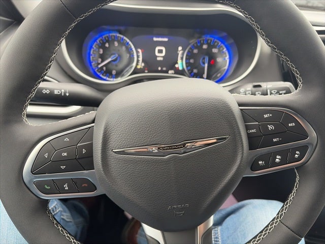 Quick Order Package 27E, 17 x 7 Aluminum Wheels, 3.25 Axle Ratio, 3rd row seats: split-bench, 4-Wheel Disc Brakes, 6 Speakers, ABS brakes, Air Conditioning, Alloy wheels, AM/FM radio: SiriusXM, Apple CarPlay/Android Auto, Automatic temperature control, Black Seats, Brake assist, Bumpers: body-color, Caprice Leatherette Bucket Seats, Compass, Delay-off headlights, Driver door bin, Driver vanity mirror, Driver's Seat Mounted Armrest, Dual front impact airbags, Dual front side impact airbags, Electronic Stability Control, Emergency communication system: Chrysler Connect, Four wheel independent suspension, Front anti-roll bar, Front Bucket Seats, Front dual zone A/C, Front reading lights, Fully automatic headlights, Heated door mirrors, Heated front seats, Heated steering wheel, Illuminated entry, Knee airbag, Low tire pressure warning, Occupant sensing airbag, Outside temperature display, Overhead airbag, Overhead console, Panic alarm, ParkView Rear Back-Up Camera, Passenger door bin, Passenger seat mounted armrest, Passenger vanity mirror, Power door mirrors, Power driver seat, Power Liftgate, Power steering, Power windows, Radio data system, Radio: Uconnect 5 with 10.1 Display, Rain sensing wipers, Rear air conditioning, Rear window defroster, Rear window wiper, Reclining 3rd row seat, Remote keyless entry, Security system, Speed control, Split folding rear seat, Spoiler, Steering wheel mounted audio controls, Tachometer, Telescoping steering wheel, Tilt steering wheel, Touring Suspension, Traction control, Trip computer, Turn signal indicator mirrors, Variably intermittent wipers, and Voltmeter. 19/28 City/Highway MPG