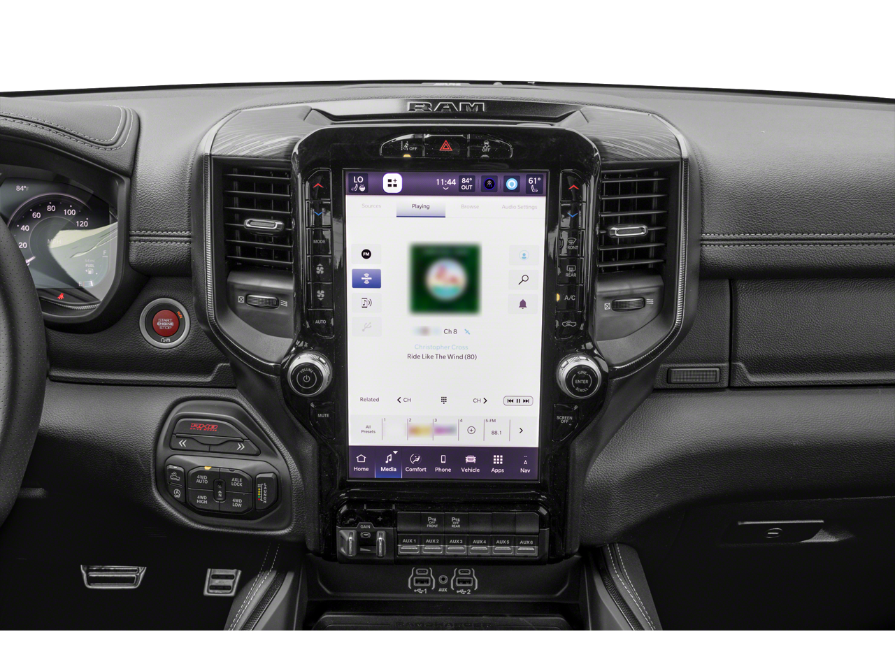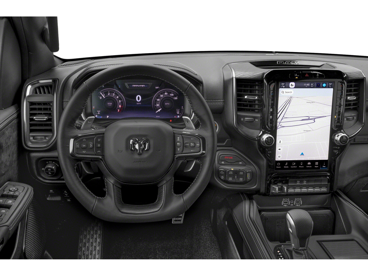 Diamond Black Crystal Pearlcoat 2026 Ram 1500 4D Crew Cab RHO 4WD 8-Speed Automatic 3.0L I6 ** Alloy Wheels / Premium Wheels, ** Apple CarPlay/Android Auto, ** Bluetooth®, Hands Free, ** Premium Sound System / Premium Audio, ** Stability Control, ** USB Port, 10 Speakers, 12-Way/1-Way Trailer Connector, 14.4 Touchscreen Display, 240 Amp Alternator, 3.92 Rear Axle Ratio, 4-Wheel Disc Brakes, 4G LTE Wi-Fi Hot Spot, ABS brakes, Adaptive suspension, Adjustable pedals, Air Conditioning, Alloy wheels, AM/FM radio, Apple CarPlay/Android Auto, Auto High-beam Headlights, Auto Power-Folding Mirrors, Auto-dimming door mirrors, Auto-Dimming Exterior Driver Mirror, Auto-dimming Rear-View mirror, Automatic temperature control, Brake assist, Compass, Connected Travel and Traffic Services, Connectivity - US/Canada, Delay-off headlights, Disassociated Touchscreen Display, Dome Dual LED Reading Lamp, Driver door bin, Driver Power Seat Back Massage, Driver Seat Memory, Driver vanity mirror, Driver/Passenger Wrapped Assist Handles, Drowsy Driver Detection, Dual front impact airbags, Dual front side impact airbags, Dual Wireless Charging Pad, Dual-Pane Panoramic Sunroof, Electronic Stability Control, Evasive Steer Assist, Exterior Mirrors Courtesy Lamps, Exterior Mirrors with Heating Element, Exterior Mirrors with Memory, Exterior Mirrors with Supplemental Signals, Exterior Parking Camera Rear, Flareside Box, Front anti-roll bar, Front Bucket Seats, Front Center Armrest w/Storage, Front dual zone A/C, Front fog lights, Front License Plate Bracket, Front Passenger Interactive Display, Front Passenger Power Seat Back Massage, Front reading lights, Front wheel independent suspension, Full Length Premium Upgraded Floor Console, Fully automatic headlights, Garage door transmitter, GPS Navigation, Hands-Free Active Driving Assist System, Harman/Kardon 19 Speaker Premium Sound, HD Radio, Heads-Up Display, Heated door mirrors, Heated front seats, Heated Second Row Seats, Heated steering wheel, Illuminated entry, Integrated Center Stack Radio, Integrated Voice Command with Bluetooth®, Intersection Collision Assist System, Leather Shift Knob, Leather steering wheel, Leather Trimmed Bucket Seats, Leather/Carbon Flat-Bottom Steering Wheel, LED CHMSL Lamp, Low tire pressure warning, Luxury Front Door Trim Panel, Manufacturer's Statement of Origin, Navigation System, Occupant sensing airbag, Outside temperature display, Overhead airbag, Overhead console, Panic alarm, Passenger door bin, Passenger vanity mirror, Power Adjustable Pedals with Memory, Power door mirrors, Power driver seat, Power passenger seat, Power steering, Power Tailgate, Power windows, Premium Wrapped Instrument Panel Bezel, Quick Order Package 22Y RHO, Radio data system, Radio: Uconnect 5 Nav with 14.4 Display, Radio: Uconnect 5 Navigation with 12.0 Display, Radio/Driver Seat/Mirrors/Pedals Memory, Rain Sensitive Windshield Wipers, Real Carbon Fiber Interior Accents, Rear 60/40 Folding Split Recline Seat, Rear reading lights, Rear seat center armrest, Rear step bumper, Rear window defroster, Remote keyless entry, RHO Level 1 Equipment Group, Security system, SiriusXM Radio Service, Smartphone as a Key Capable, Speed control, Split folding rear seat, Sport steering wheel, Steering wheel mounted audio controls, Surround View Camera System, Tachometer, Telescoping steering wheel, Tilt steering wheel, Traction control, Traffic Sign Recognition, Trip computer, Turn signal indicator mirrors, USB Host Flip, Variably intermittent wipers, Ventilated Front Seats, Ventilated Rear Seats, Voltmeter, Wheels: 18 x 9 Black Paint/Polish Aluminum.