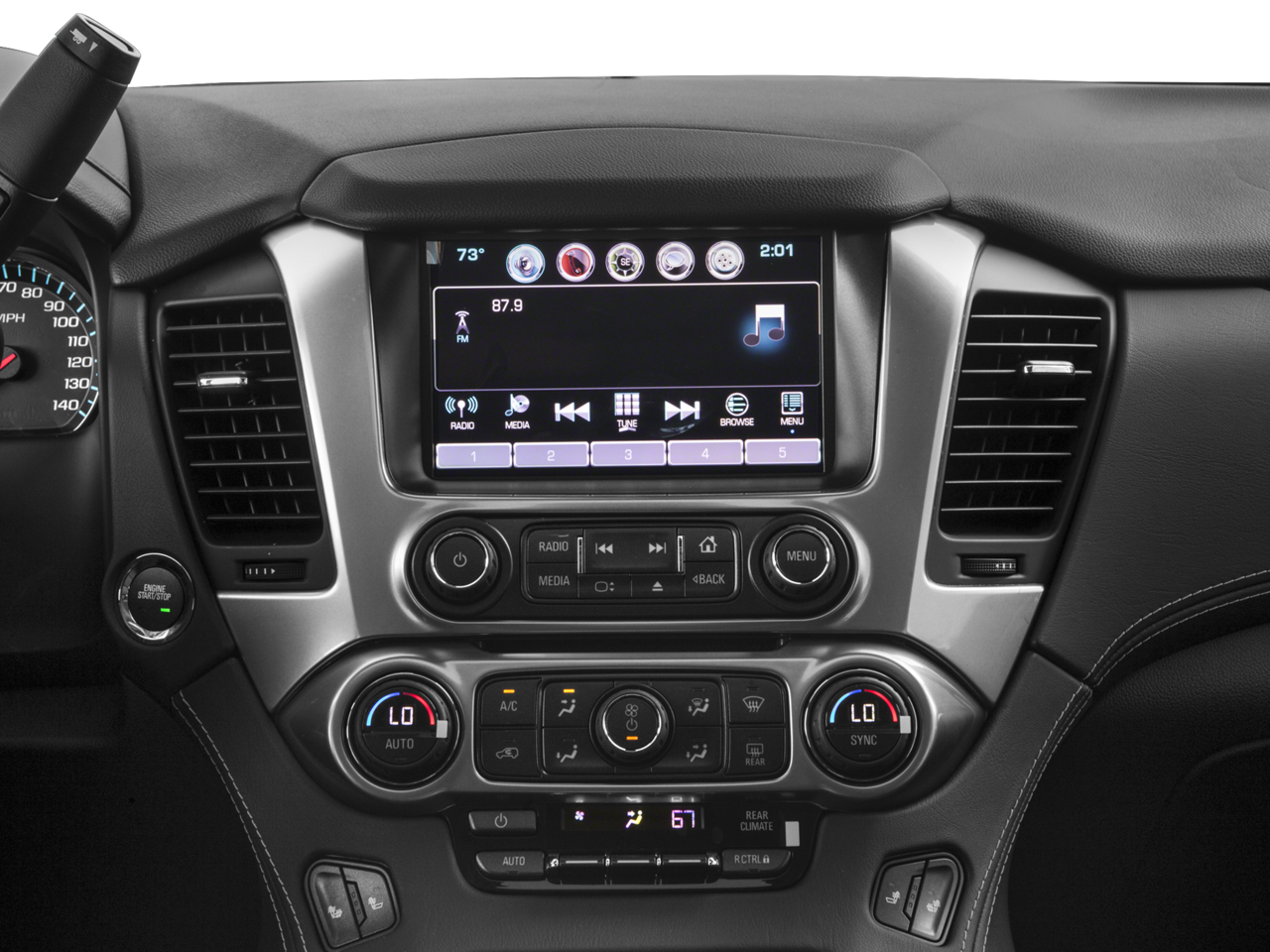 - Audio system, Chevrolet MyLink Radio with 8" diagonal color touch-screen AM/FM stereo, seek-and-scan and digital clock, includes Bluetooth® streaming audio for music and select phones; voice-activated technology for radio and phone; featuring Apple CarPlay capability for compatible phone; 5 USB ports and 1 auxiliary jack