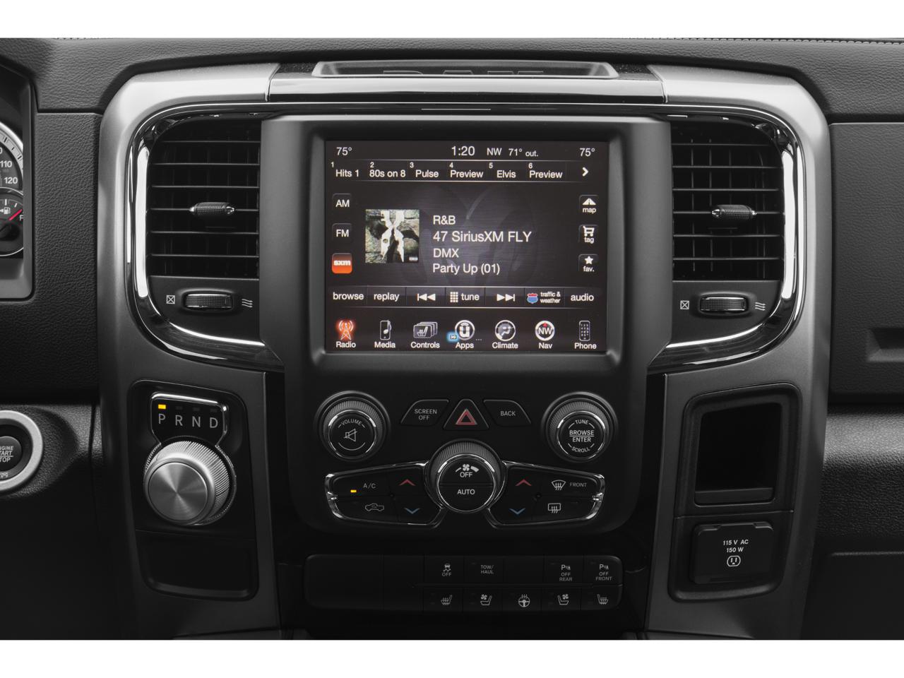** Alloy Wheels / Premium Wheels, ** Apple CarPlay/Android Auto, ** Bluetooth®, Hands Free, ** Premium Sound System / Premium Audio, ** Stability Control, ** USB Port, 1-Yr SiriusXM Guardian Trial, 115V Auxiliary Power Outlet, 3.21 Rear Axle Ratio, 4-Wheel Disc Brakes, 40/20/40 Split Bench Seat, 6 Speakers, 8.4 Touchscreen Display, ABS brakes, Active Grille Shutters, Air Conditioning, Air Conditioning ATC w/Dual Zone Control, Alloy wheels, AM/FM radio: SiriusXM, Apple CarPlay, Audio Jack Input for Mobile Devices, Auto-Dimming Exterior Mirrors, Auto-Dimming Rear-View Mirror, Big Horn Badge, Big Horn Regional Package, Black Exterior Mirrors, Brake assist, Bright/Bright Billets Grille, Bumpers: chrome, Center Hub, Charge Only Remote USB Port, Class IV Receiver Hitch (DISC), Compass, Delay-off headlights, Driver door bin, Dual front impact airbags, Dual front side impact airbags, Dual Rear Exhaust w/Bright Tips, Electric Shift-On-Demand Transfer Case, Electroluminescent Instrument Cluster, Electronic Shift, Electronic Stability Control, Exterior Mirrors Courtesy Lamps, Exterior Mirrors w/Heating Element, Exterior Mirrors w/Supplemental Signals, Folding Flat Load Floor Storage, Front anti-roll bar, Front Armrest w/3 Cupholders, Front Center Armrest w/Storage, Front Center Seat Cushion Storage, Front Fog Lamps, Front reading lights, Front wheel independent suspension, Fully automatic headlights, Glove Box Lamp, Google Android Auto, GPS Antenna Input, HD Radio, Heated door mirrors, Heated Front Seats, Heated Seats & Wheel Group, Heated Steering Wheel, Humidity Sensor, Illuminated entry, Integrated Voice Command w/Bluetooth®, Leather Wrapped Steering Wheel, LED Bed Lighting, Low tire pressure warning, Manufacturer's Statement of Origin, Media Hub (2 USB, AUX), Occupant sensing airbag, Outside temperature display, Overhead airbag, Overhead console, Overhead Console w/Garage Door Opener, Panic alarm, ParkSense Front/Rear Park Assist System, ParkSense Rear Park Assist System, ParkView Rear Back-Up Camera, Passenger door bin, Passenger vanity mirror, Power 10-Way Driver Seat, Power door mirrors, Power Heated Fold-Away Mirrors, Power Lumbar Adjust, Power steering, Power windows, Power-Folding Mirrors, Premium Cloth 40/20/40 Bench Seat, Quick Order Package 26S Big Horn (DISC), Radio data system, Radio: Uconnect 4C w/8.4 Display, Rear 60/40 Split Folding Seat, Rear anti-roll bar, Rear Dome w/On/Off Switch Lamp, Rear Floor Mats, Rear Power Sliding Window, Rear seat center armrest, Rear step bumper, Remote keyless entry, Remote Start System, Remote USB Port, Security Alarm, SiriusXM Satellite Radio, Speed control, Steering Wheel Mounted Audio Controls, Storage Tray, Sun Visors w/Illuminated Vanity Mirrors, Tachometer, Tilt steering wheel, Tip Start, Traction control, Trip computer, Universal Garage Door Opener, USB Host Flip, Variably intermittent wipers, Voltmeter, Wheels: 20 x 8 Aluminum Chrome Clad.