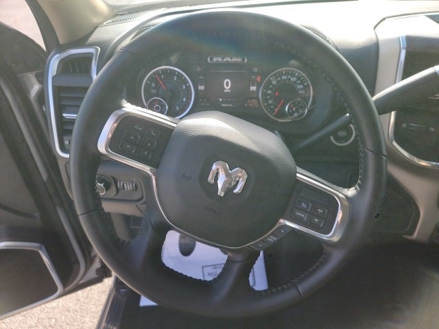 ** Alloy Wheels / Premium Wheels, ** Apple CarPlay/Android Auto, ** Bluetooth®, Hands Free, ** Premium Sound System / Premium Audio, ** Stability Control, ** USB Port, 1 Year Telematics Service, 10 Speakers, 115V Auxiliary Rear Power Outlet, 2 Way Rear Headrest Seat, 220 Amp Alternator, 3.73 Axle Ratio, 4 Way Front Headrests, 4-Wheel Disc Brakes, 8.4 Touchscreen Display, ABS brakes, Active Noise Control System, Adjustable pedals, Air Conditioning, Alloy wheels, AM/FM radio: SiriusXM, Anti-Spin Differential Rear Axle, Apple CarPlay, Apple CarPlay/Android Auto, Auto-dimming Rear-View mirror, Automatic temperature control, Brake assist, Bumpers: chrome, Compass, Delay-off headlights, Driver door bin, Driver vanity mirror, Dual front impact airbags, Dual front side impact airbags, Electronic Stability Control, Electronically Controlled Throttle, Front anti-roll bar, Front Center Armrest w/Storage, Front dual zone A/C, Front fog lights, Front License Plate Bracket, Front reading lights, Front Seat Back Map Pockets, Fully automatic headlights, Garage door transmitter, Google Android Auto, GPS Antenna Input, Heated door mirrors, Heated Front Seats, Heated front seats, Heated Steering Wheel, Heated steering wheel, Illuminated entry, Integrated Center Stack Radio, Integrated Voice Command w/Bluetooth®, Leather steering wheel, Leather Trim 40/20/40 Bench Seat, Low tire pressure warning, Occupant sensing airbag, Outside temperature display, Overhead airbag, Overhead console, Panic alarm, ParkView Rear Back-Up Camera, Passenger door bin, Passenger vanity mirror, Power 2-Way Driver Lumbar Adjust, Power 2-Way Passenger Lumbar Adjust, Power Adjust 8-Way Driver Seat, Power Adjust 8-Way Front Passenger Seat, Power door mirrors, Power driver seat, Power passenger seat, Power steering, Power windows, Quick Order Package 2HH Laramie, Radio data system, Radio: Uconnect 4 w/8.4 Display, RAM Telematics, Rear 60/40 Folding Seat, Rear anti-roll bar, Rear reading lights, Rear seat center armrest, Rear step bumper, Rear window defroster, Remote keyless entry, Security system, SiriusXM Satellite Radio, Speed control, Split folding rear seat, Steering wheel mounted audio controls, Tachometer, Tilt steering wheel, Tip Start, Tow Hooks, Traction control, Trip computer, Turn signal indicator mirrors, Variably intermittent wipers, Vendor Painted Cargo Box Tracking, Voltmeter, Wheels: 18 x 8.0 Polished Aluminum.