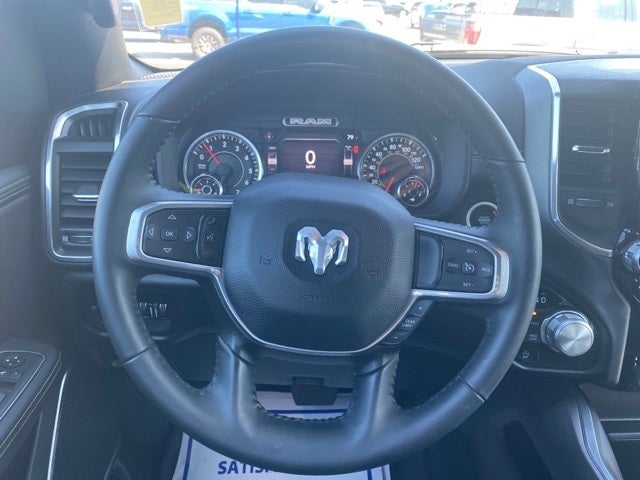 ** Alloy Wheels / Premium Wheels, ** Apple CarPlay/Android Auto, ** Bluetooth®, Hands Free, ** Premium Sound System / Premium Audio, ** Stability Control, ** USB Port, #1 Seat Foam Cushion, 10 Speakers, 12 Touchscreen Display, 2nd Row In Floor Storage Bins, 3 Rear Seat Head Restraints, 3.21 Rear Axle Ratio, 33 Gallon Fuel Tank, 4 Way Front Headrests, 4-Wheel Disc Brakes, 48V Belt Starter Generator, 4G LTE Wi-Fi Hot Spot, ABS brakes, Adjustable pedals, Air Conditioning, Alloy wheels, AM/FM radio: SiriusXM with 360L, Anti-Spin Differential Rear Axle, Apple CarPlay, Apple CarPlay/Android Auto, Audio memory, Auto High Beam Headlamp Control, Auto-dimming door mirrors, Auto-Dimming Exterior Driver Mirror, Auto-dimming Rear-View mirror, Automatic temperature control, Blind Spot & Cross Path Detection, Brake assist, Bumpers: chrome, Chrome Exterior Mirrors, Chrome Power-Fold Trailer Tow Mirrors (DISC), Compass, Connected Travel & Traffic Services, Connectivity - US/Canada, Convex Wide-Angle Exterior Mirror Insert, Delay-off headlights, Disassociated Touchscreen Display, Driver door bin, Driver Seat Memory, Driver vanity mirror, Dual front impact airbags, Dual front side impact airbags, Electric Shift-On-Demand Transfer Case, Electronic Stability Control, Exterior Mirrors Courtesy Lamps, Exterior Mirrors w/Heating Element, Exterior Mirrors w/Memory, Exterior Mirrors w/Supplemental Signals, Foam Bottle Insert (Door Trim Panel), For Details, Visit DriveUconnect.com, For More Info, Call 800-643-2112, Front anti-roll bar, Front Center Armrest w/Storage, Front Door Accent Lighting, Front dual zone A/C, Front fog lights, Front LED Fog Lamps, Front License Plate Bracket, Front reading lights, Front Seat Back Map Pockets, Front wheel independent suspension, Fully automatic headlights, Garage door transmitter, Global Telematics Box Module (TBM), Google Android Auto, GPS Antenna Input, GPS Navigation, HD Radio, Heated door mirrors, Heated Front Seats, Heated front seats, Heated Steering Wheel, Heated steering wheel, Illuminated entry, Integrated Center Stack Radio, Integrated Voice Command w/Bluetooth®, Laramie Level 1 Equipment Group, Leather steering wheel, Leather Trim 40/20/40 Bench Seat, LED Reflector Headlamps, Low tire pressure warning, Manufacturer's Statement of Origin, Memory seat, Mirror Clearance/Running Lights, Mirror-Mounted Aux Reverse Lamps, MOPAR Front & Rear Rubber Floor Mats, Navigation System, Occupant sensing airbag, Outside temperature display, Overhead airbag, Overhead console, Panic alarm, ParkSense Front/Rear Park Assist w/Stop (DISC), ParkView Rear Back-Up Camera, Passenger door bin, Passenger vanity mirror, Pedal memory, Power 2-Way Driver Lumbar Adjust, Power 2-Way Passenger Lumbar Adjust, Power 8-Way Driver & Passenger Seats, Power door mirrors, Power driver seat, Power passenger seat, Power steering, Power windows, Power-Folding Mirrors, Quick Order Package 27H Laramie, Radio data system, Radio: Uconnect 5 Nav w/12.0 Display, Radio: Uconnect 5 Nav w/8.4 Display, Rain Sensitive Windshield Wipers, RAM Grille Badge - Chrome, Rear 60/40 Folding Seat, Rear anti-roll bar, Rear Door Accent Lighting, Rear Power Sliding Window, Rear seat center armrest, Rear step bumper, Rear Wheelhouse Liners, Rear Window Defroster, Remote keyless entry, Remote Tailgate Release, Security system, SiriusXM Radio Service, SiriusXM w/360L, Speed control, Split folding rear seat, Steering wheel mounted audio controls, Tachometer, Telescoping steering wheel, Tilt steering wheel, Traction control, Trailer Tow Mirrors, Trip computer, Turn signal indicator mirrors, USB Host Flip, Variably intermittent wipers, Ventilated Front Seats, Ventilated front seats, Voltmeter, Wheels: 18 x 8 Aluminum Base Painted, Wheels: 20 x 9 Premium Paint/Polished.
