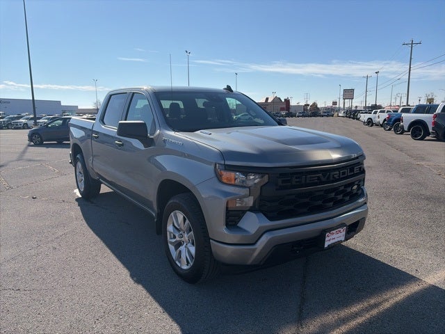 Clean CARFAX. Sterling Gray Metallic 2025 Chevrolet Silverado 1500 4D Crew Cab Custom 2.7L I4 Turbocharged DOHC 16V LEV3-SULEV30 310hp 8-Speed Automatic 4WD